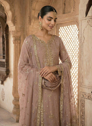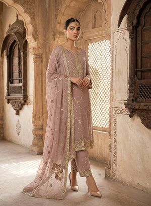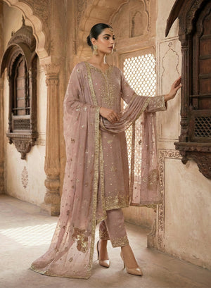 Style: Embroidered chiffon shirt with cotton silk trouser and embroidered chiffon dupatta.