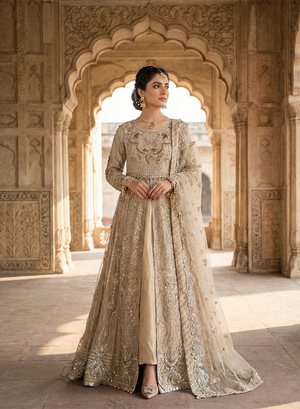 Style: Embroidered net maxi paired with straight trouser and net dupatta.