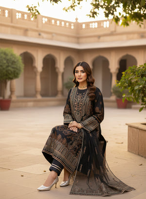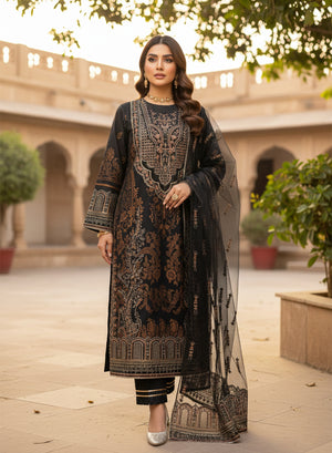 Fabric: Premium jacquard lawn, lawn & net.