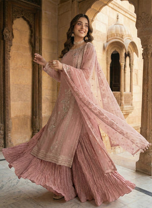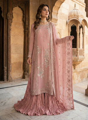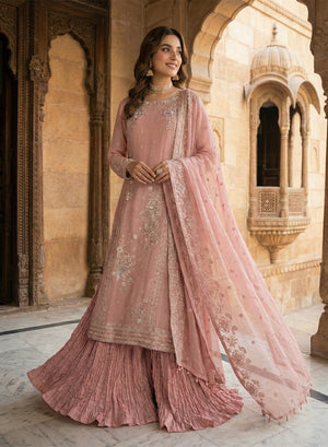 Style: Embroidered chiffon shirt with cotton silk trouser and embroidered chiffon dupatta.