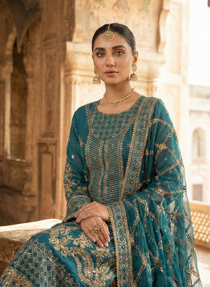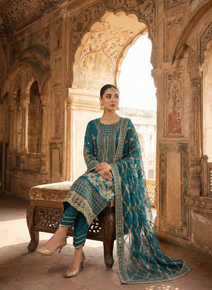 Style: Embroidered chiffon shirt with cotton silk trouser and embroidered chiffon dupatta.