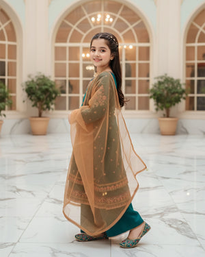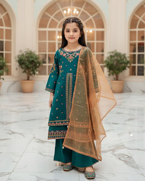 Style: Embroidered self jacquard shirt with dyed viscose bottom and organza dupatta.